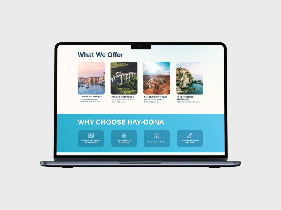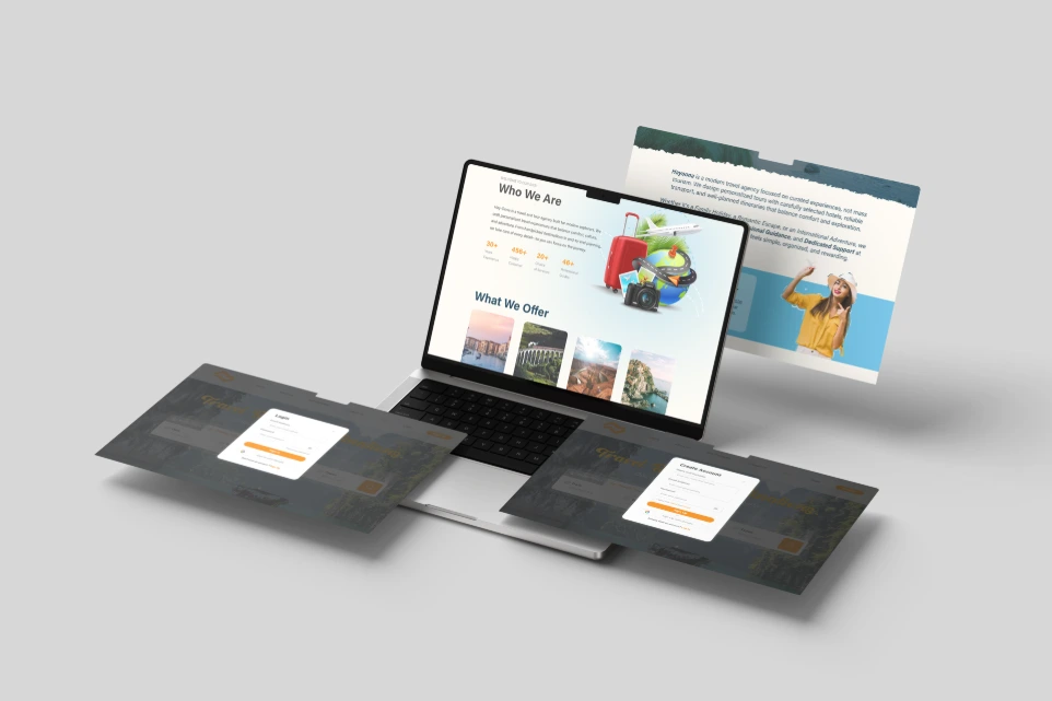A complete multi-page travel website UI designed to streamline tour discovery and bookings. The layout focuses on clear package listings, detailed destination pages, and strong call-to-actions to drive conversions.