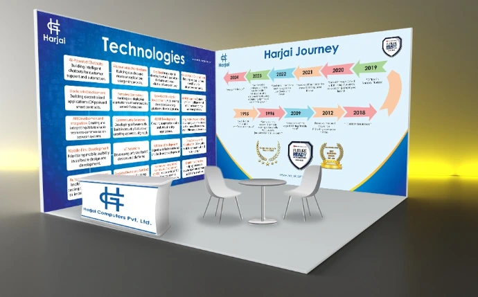 A modern exhibition booth and brand communication design focused on visual clarity, structured storytelling, and strong on-ground presence. The layout combines clean aesthetics, strategic messaging zones, and modular elements to create an engaging and professional trade-show experience.